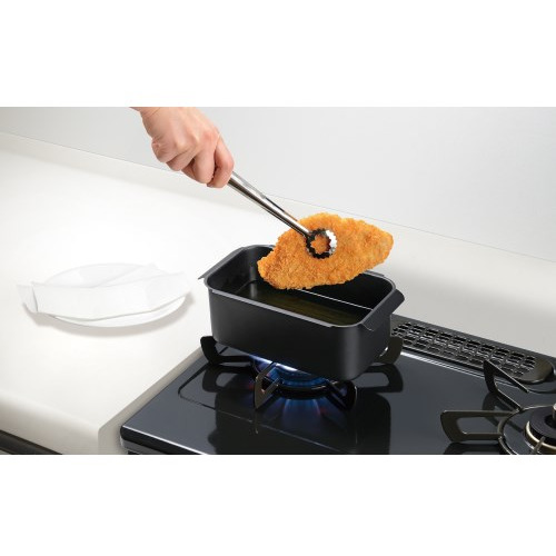 ●少ない油で揚げられるコンパクトな角型揚げ鍋です。