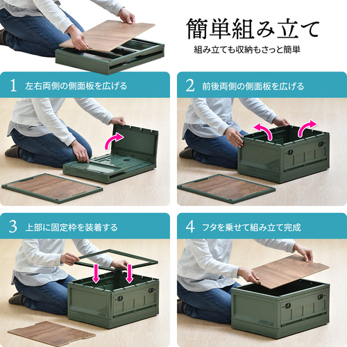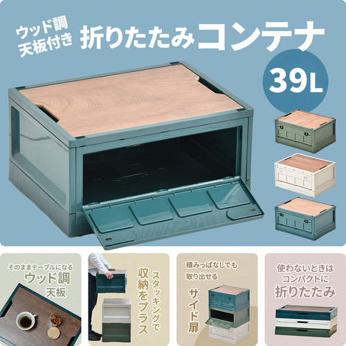 B.Bファニシング ONOD0110PLGRE Asoby 天板付き 折りたたみBOX キャスター付き グリーン39L W470×D350×H240mm グリーン