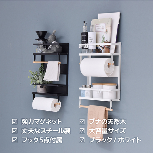 B.Bファニシング ONKS0140KIBLKMaRChe マグネット キッチンペーパー&タオルホルダー (大)【ブラック】 ブラック