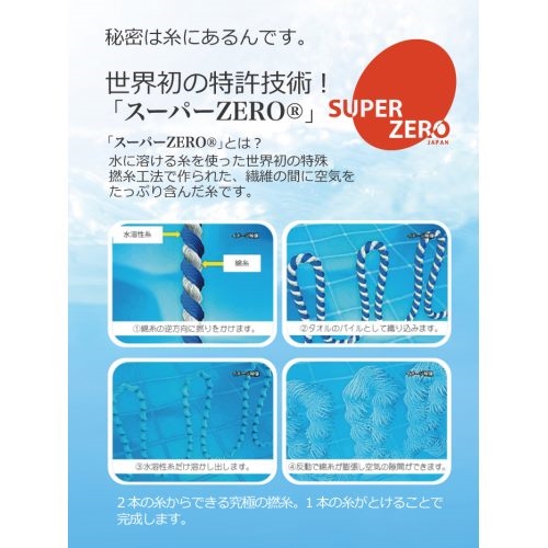 タオルをつくる糸一本一本が、普通の糸の約1.6倍の空気を間に含んでいますので、通気性が高くなり一般的なタオルに比べ 、洗濯後の乾燥時間は大幅に短縮できます。梅雨の時期や、部屋干しなどの乾燥に優れています。