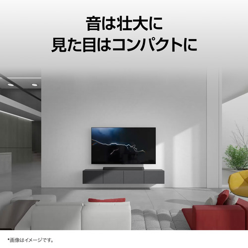 テレビ本体のスピーカーからはクリアな中・高音を、サウンドバーからは重厚な中・低音を聞かせます。テレビとサウンドバー双方から流れ出るハーモニーをお楽しみください。