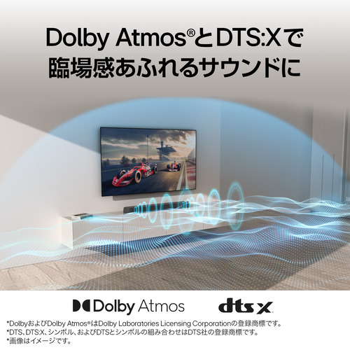 最大出力100W 3chサウンドシステムと、Dolby AtmosおよびDTS:Xの立体サウンドで、没入感あふれる視聴体験を。