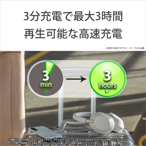 連続音声再生時間:最大30時間(NC ON時)、最大40時間(NC OFF時)