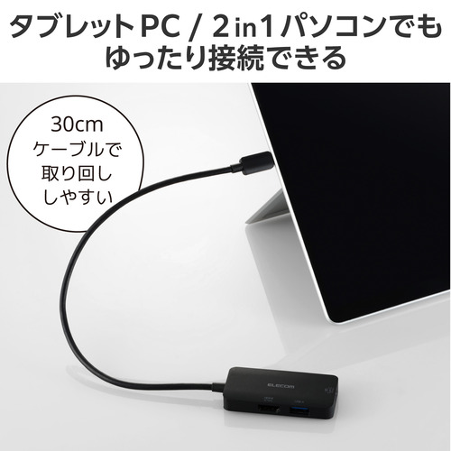 ●ケーブルは紛失の心配がない直付けタイプです。タブレットPC/2in1パソコンでもゆったり接続できるケーブル長約30cmです。