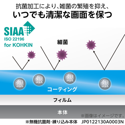 ●抗菌加工により、雑菌の繁殖を抑え、いつでも清潔な画面を保ちます。