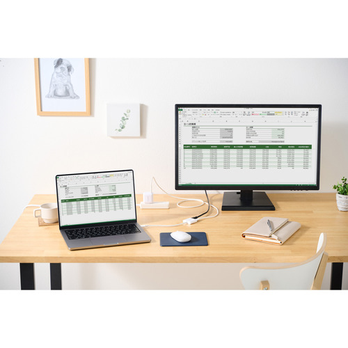 ●ディスプレイを拡張・複製するマルチディスプレイに対応しています。大きい画面にスマートフォンやパソコンなどの映像を表示することで作業効率を向上します。