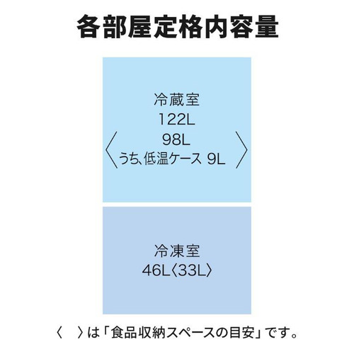 冷蔵室(スライド室):122L(内、スライド室9L)