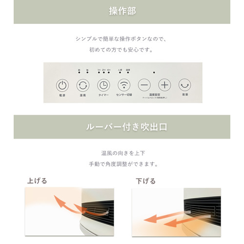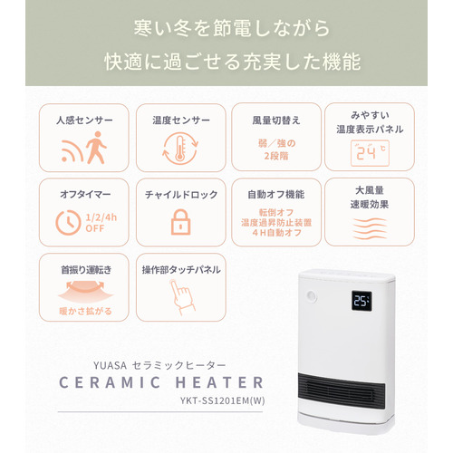 ユアサプライムス YKT-SS1201EM 首振りセラミックヒーター 転倒OFFスイッチ搭載 ホワイト