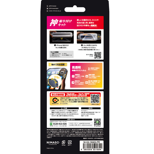 NIMASO NI-G2-16AK2-PR iPhone 16 高透明 完全保護 神ガイド