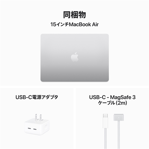 付属品:デュアルUSB-Cポート搭載35Wコンパクト電源アダプタ、USB-C - MagSafe3ケーブル(2m)