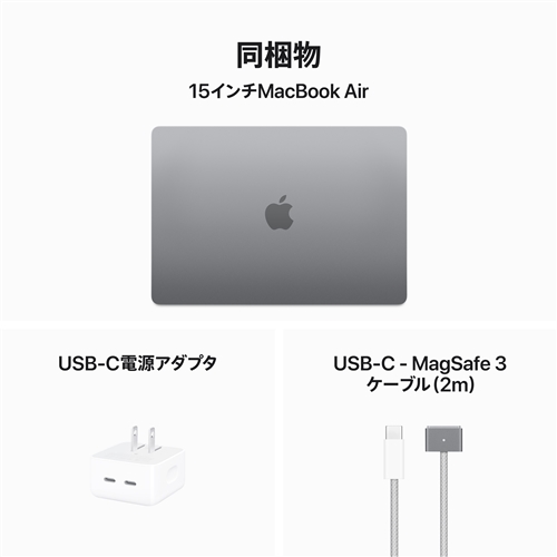 付属品:デュアルUSB-Cポート搭載35Wコンパクト電源アダプタ、USB-C - MagSafe3ケーブル(2m)