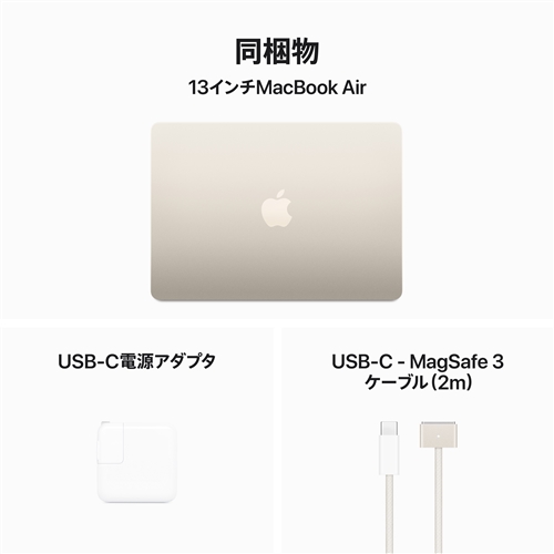 アップル(Apple) MXCU3J/A 13インチMacBook Air 8コアCPUと10コアGPUを搭載したApple M3チップ 16GB 512GB SSD スターライト