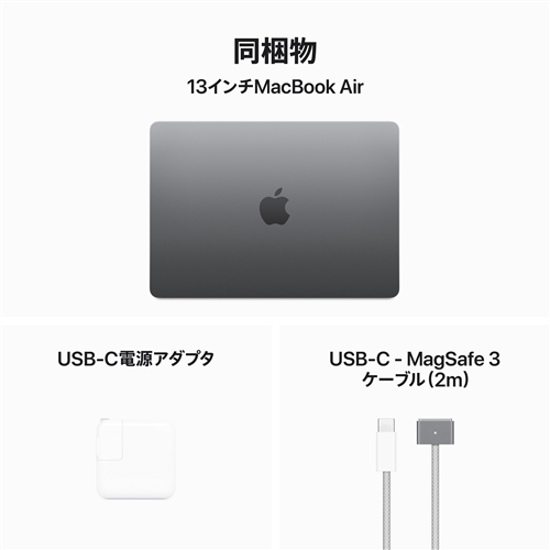 付属品:デュアルUSB-Cポート搭載35Wコンパクト電源アダプタ、USB-C - MagSafe3ケーブル(2m)