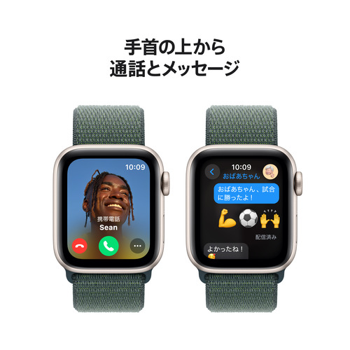 メッセージを送る。電話に出る。音楽やポッドキャストを聴く。Siri を使う。緊急SOS で助けを呼ぶ。Apple Watch SE(GPS モデル)を iPhone または Wi-Fi に接続すると、いつでもつながっていられます。