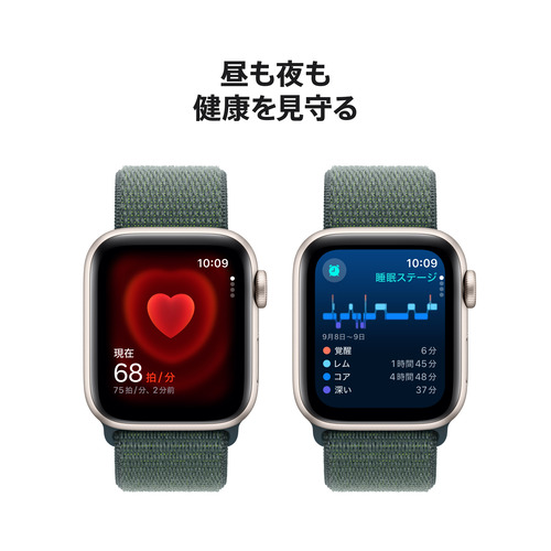 アクティブに過ごしながらモチベーションをキープする。いつもつながる。健康状態を記録する。安全を守る。そのために欠かせない機能をすべて搭載。watchOS 11 の登場で、より賢 く、よりあなたらしく、よりつながれるデバイスに。転倒検出や強化されたワークアウトの計測方法なども使える Apple Watch SE は、たくさんの魅力を、これまで以上にたくさんの腕に届けます。