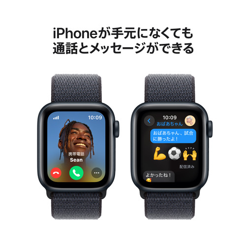 メッセージを送る。電話に出る。音楽やポッドキャストを聴く。Siri を使う。緊急SOS で助けを呼ぶ。Apple Watch SE(GPS モデル)を iPhone または Wi-Fi に接続すると、いつでもつながっていられます。