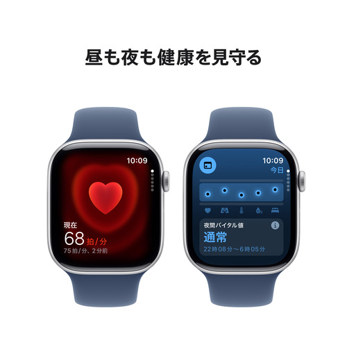 ●Apple Watch Series 10、登場。より大きいディスプレイ。より広いスクリーン領域。より薄くて軽いボディ。睡眠時無呼吸の通知など、健康とフィットネスのための先進的な機能も搭載しています。しかも、充電はより高速に。