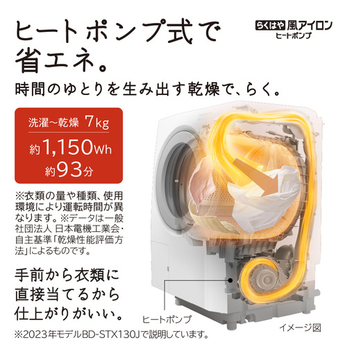 ●高速風と大風量でシワを伸ばし、ヒートポンプ式で省エネ・時短「らくはや風アイロン」