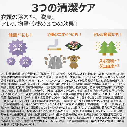 全面スチームラインによって衣類にスチームが浸透し、シワやニオイにしっかり効きます。