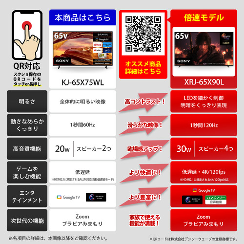 【推奨品】ソニー KJ-65X75WL 液晶テレビ BRAVIA 65型