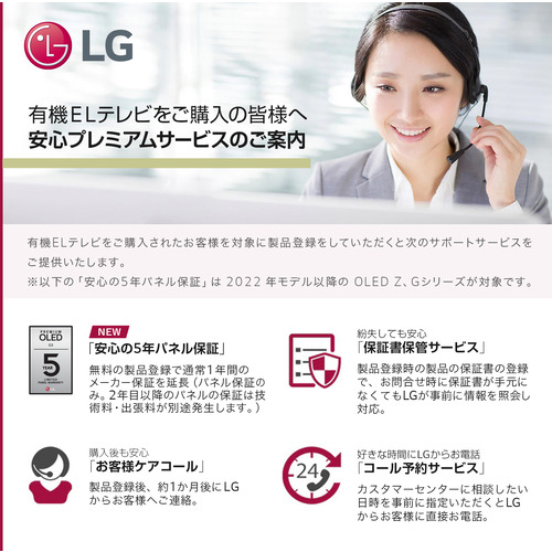通常1年のメーカー保証が、メーカーホームページにて製品登録(無料)いただくだけで5年間に延長できます。