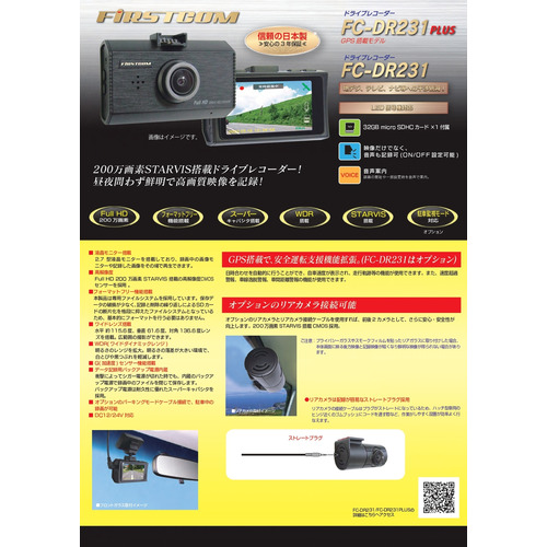 FRC FC-DR231PLUSH 【日本製・3年保証】GPS、STARVIS搭載 前方1カメラ・ドライブレコーダー FIRSTCOM FCDR231PLUSH