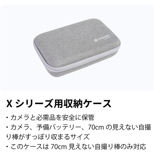 ・カメラと必需品を安全に保管することができます・カメラ、予備バッテリー、70cmの見えない自撮り棒がすっぽり収まるサイズ・このケースは70cm見えない自撮り棒のみ対応しています※対象製品:X3、ONE X2