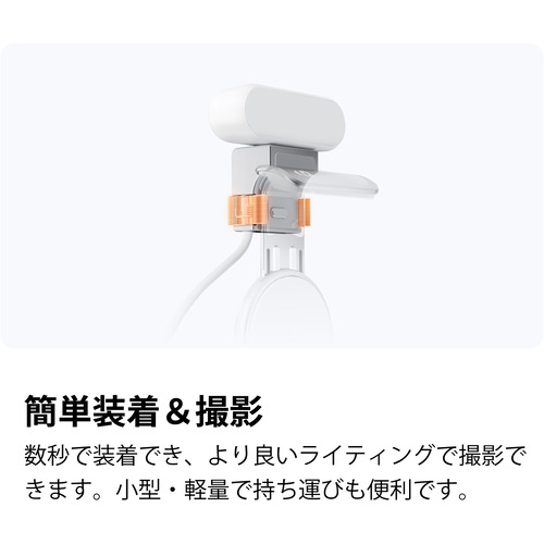 ライトは回転させて、前面または背面の、スマートフォンカメラに対応します。