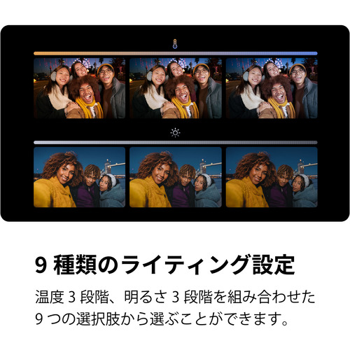 温度3段階、明るさ3段階を組み合わせた9つの選択肢から選ぶことができます。