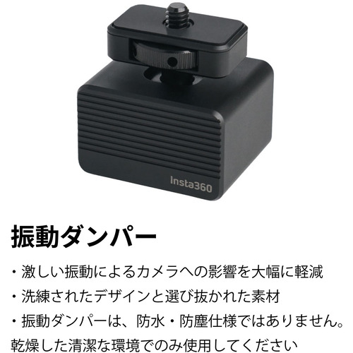 ・激しい振動によるカメラへの影響を大幅に軽減・洗練されたデザインと選び抜かれた素材・振動ダンパーは、防水・防塵仕様ではありません。 乾燥した清潔な環境でのみ使用してください※対象製品:X3、ONE RS(1インチ360度版は除く)