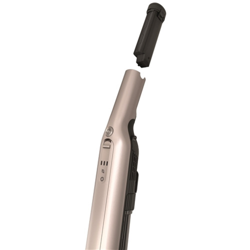 片手でリリースボタンをつまむだけで強力なハンディに。家具上や狭い場所のお掃除も、気づいた時にサッと取ってサッと使える。ボタンを押すだけでゴミ捨てが簡単。