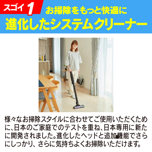 付属アクセサリー:ブラシ付き隙間用ノズル、ペットマルチノズル、布団ノズル、ミニモーターヘッド、充電ドック兼アクセサリースタンド、リチウムイオンバッテリー 2個