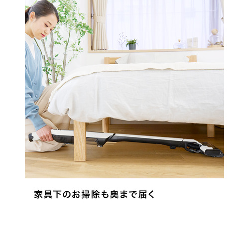 フローリングやカーペットなどあらゆる床に常に密着し、ムラなく効率よくゴミをキャッチ。従来のブラシロールでは一度で取り切れなかったゴミも、ブラシレスパワーフィンならあらゆる床に密着し、大きなゴミから細かいホコリまで一度でより多くのゴミを取り除きます。
