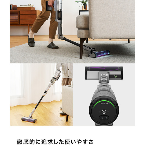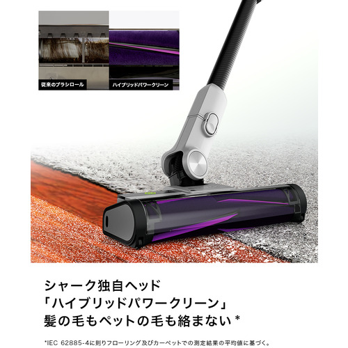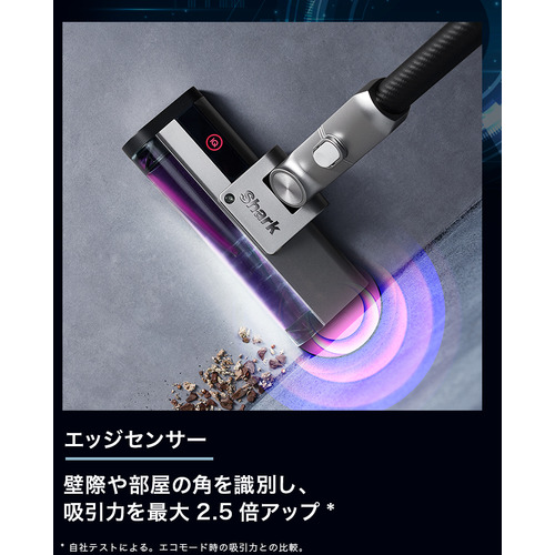 シャーク独自の先進テクノロジー「Smart iQ PRO」搭載。4つのセンサーが賢くお掃除をサポートして取り残しを徹底的になくすことにより、シャーク最高の掃除力を実現しました。*IEC 62885-4に則りフローリング及びカーペットでの測定結果の平均値に基づく。