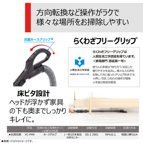 本体質量2.3kgで階段など小さな本体で移動もお掃除もラクラク。