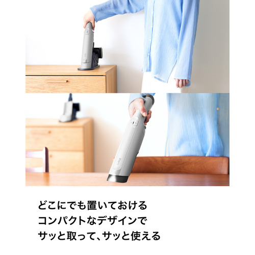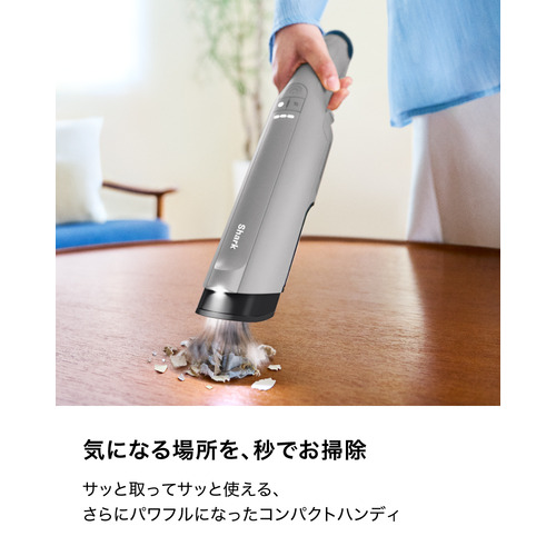 シャークのベストセラーEVOPOWERの設計を一から見直し、三世代目にフルモデルチェンジ。机や棚の上に置いておけるコンパクトなデザインだから、サッと取って気になる場所を、秒でお掃除にとりかかることができます。