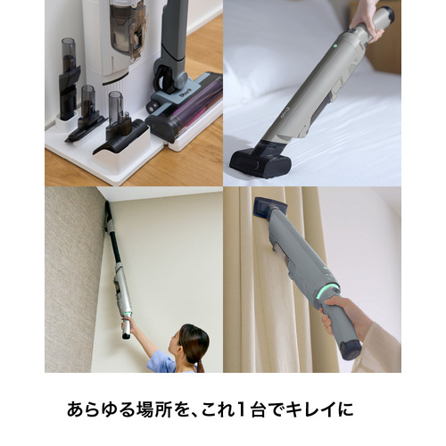 付属アクセサリー:ブラシ付き隙間用ノズル、マルチノズル、ミニモーターヘッド、自動ゴミ収集ドック(充電機能付き)、アクセサリードック、リチウムイオンバッテリー×2個