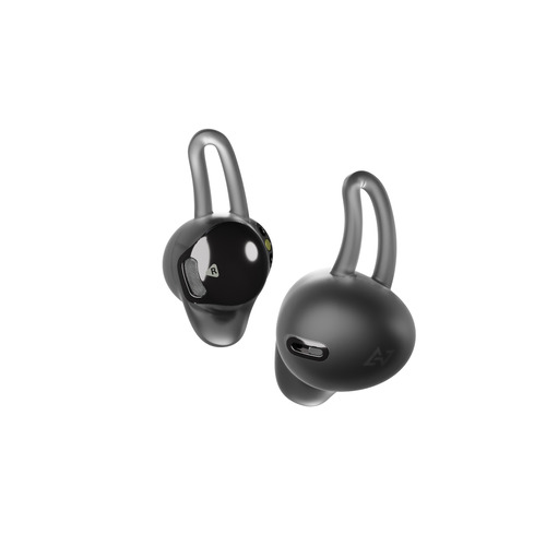 イヤーウィングを含む3点で支える独自の保持方法で、一般的な「カナル型」イヤホンとは異なり耳穴に入れずともしっかりフィット。