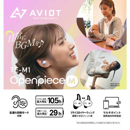 人間の聴覚特性を研究するAVIOTのエンジニアが手掛けたチューニングとの組み合わせで、オープンタイプながら高音質を実現。