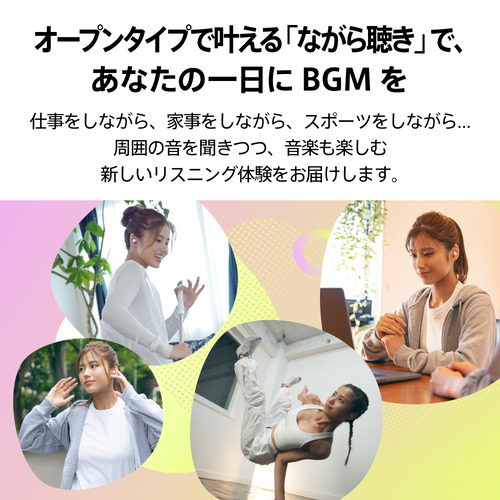 「Openpiece」シリーズは、様々なシーンで「ながら聴き」を高音質で楽しむことができる耳穴をふさがないオープンタイプのイヤホン。