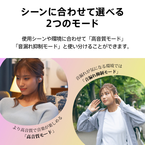 ●シーンに合わせて選べる「音漏れ抑制モード」「高音質モード」搭載