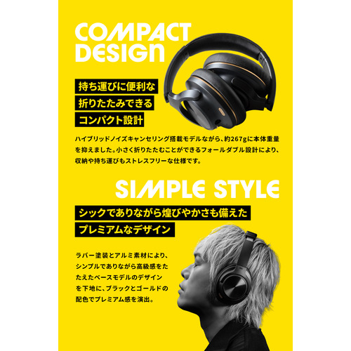 ハイブリッドノイズキャンセリング搭載モデルながら、約267gに本体重量を抑えました。さらに、小さく折りたたむことができるフォールダブル設計により、収納や持ち運びもストレスフリーな仕様です。
