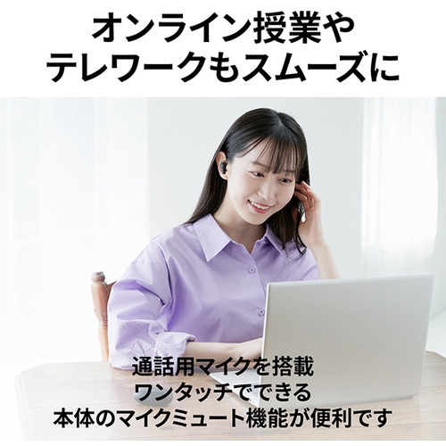 通話用マイクを搭載。ワンタッチでできる本体のマイクミュート機能が便利です。左右どちらか片方のみでの使用にも対応しています。