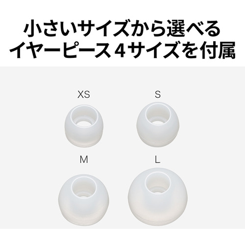 付属品:イヤーピース(XS/S/M/L)、充電用USB(Type-C)ケーブル