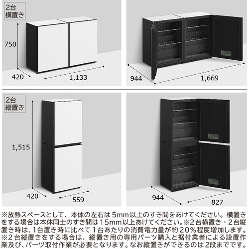 また、2台を組み合わせて横置き(※1)、縦置き(※2)ができます。