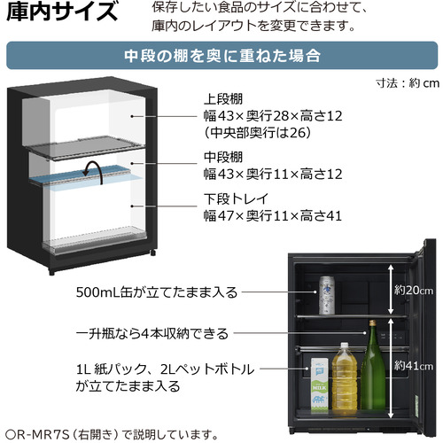 また、食品のサイズに合わせて、棚の位置を変えることで、庫内のレイアウトを変更できます。