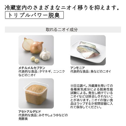 肉・魚などの生鮮食品を、凍らせない約−1℃で鮮度を守り、おいしく保存します。※日立調べ。