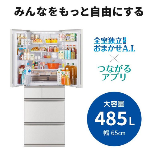 三菱電機 MR-MZ49K-W 6ドア冷蔵庫 MZシリーズ 485L・フレンチドア グランドリネンホワイト MRMZ49KW