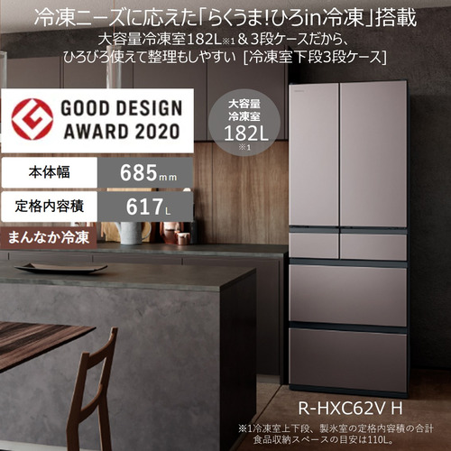 日立 R-HXC62V H 6ドア冷蔵庫 (617L・フレンチドア) ブラストモーブグレー