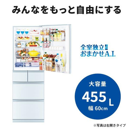 【推奨品】三菱電機 MR-BD46KL-W 5ドア冷蔵庫 455L・左開き BDシリーズ クリスタルピュアホワイト